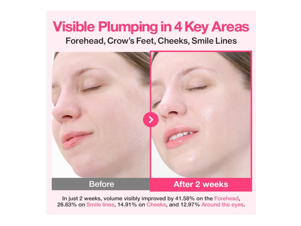 Toto korejské plumping sérum je postavené na extrémně vysokém podílu kolagenové vody, která pleti dodává okamžitý pocit hydratace a komfortu. V kombinaci s PDRN (Sodium DNA), peptidy a více formami kyseliny hyaluronové vytváří sérum efekt hladší, pružnější a „napnutější“ pleti.